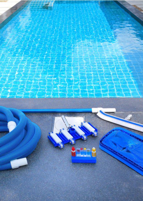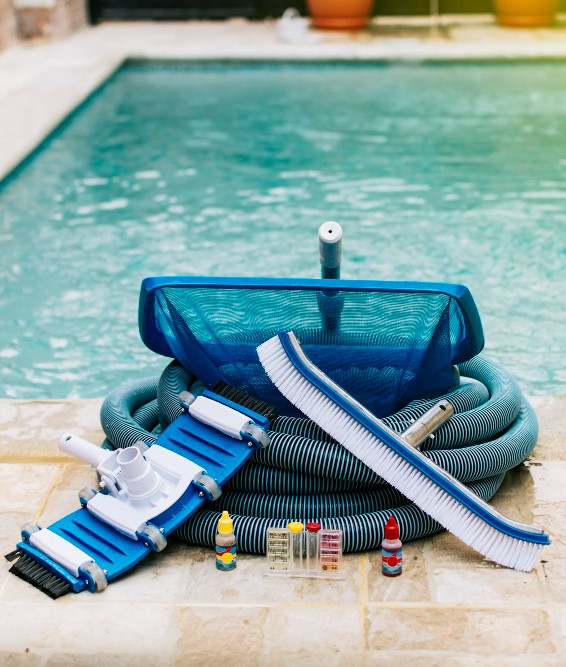 Routine cleaning & skimming — removing leaves, dirt, and surface debris